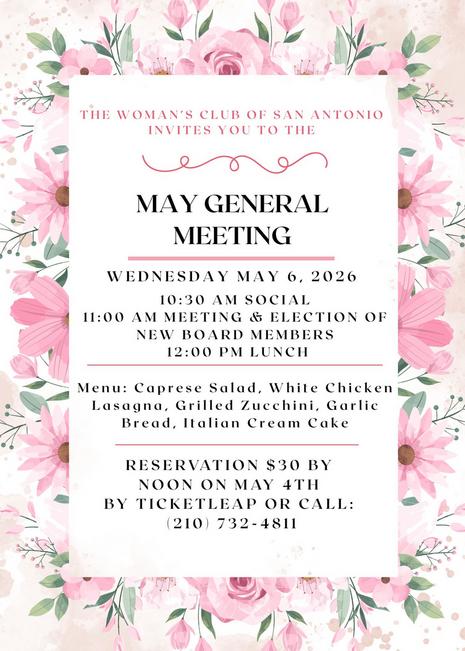 The Woman's Club of San Antonio exists for the mutual improvement and cooperation in all charitable and educational undertakings that pertain to the greater good of humanity. The club currently supports the Respite Care of San Antonio, Volunteer Services Council, San Antonio State Hospital Texas WINGS.